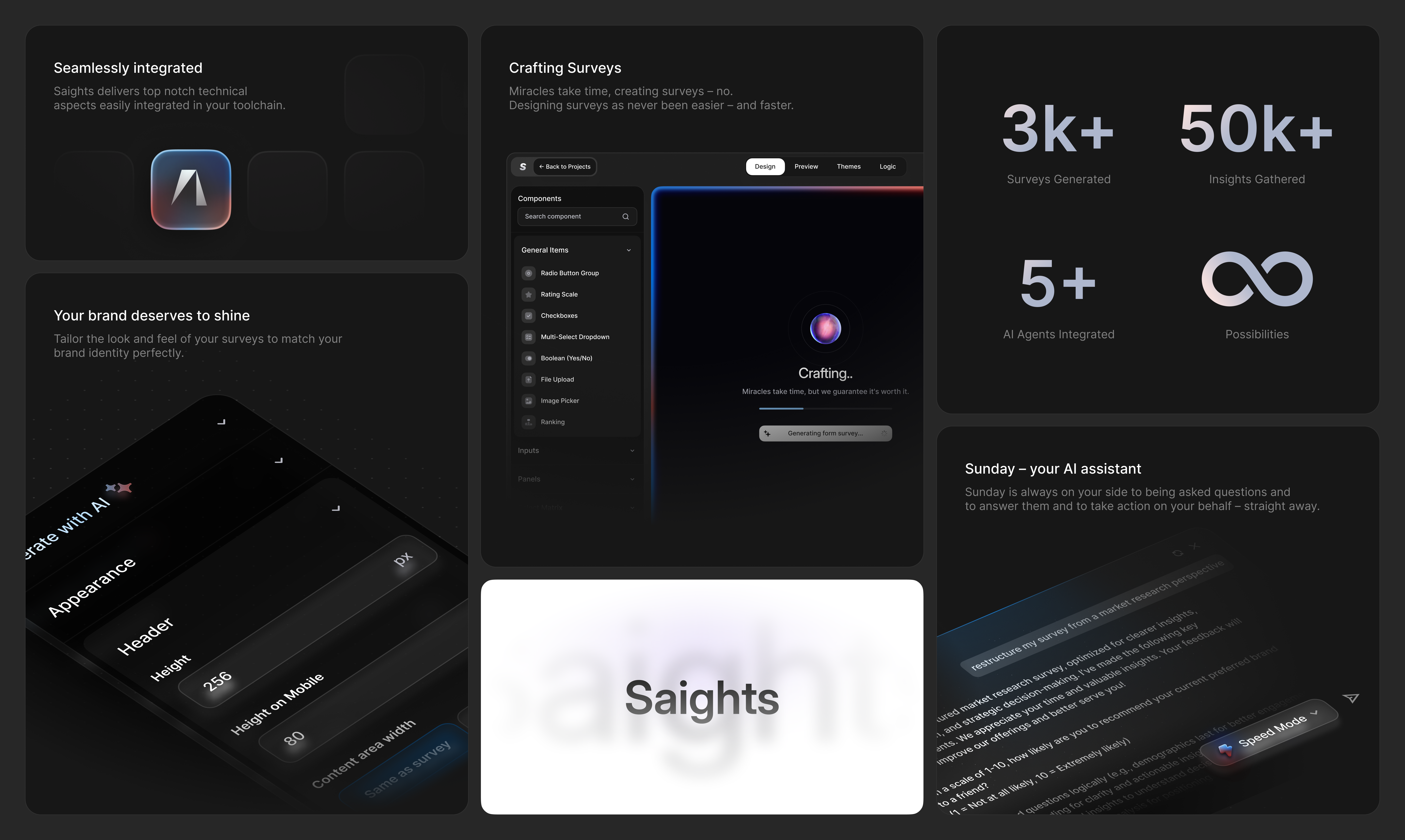 Based on Experience, Saights is being used in real life: between meetings, during launches, in the “we-need-this-live-today” moments. So our UI needs to do one job exceptionally well: